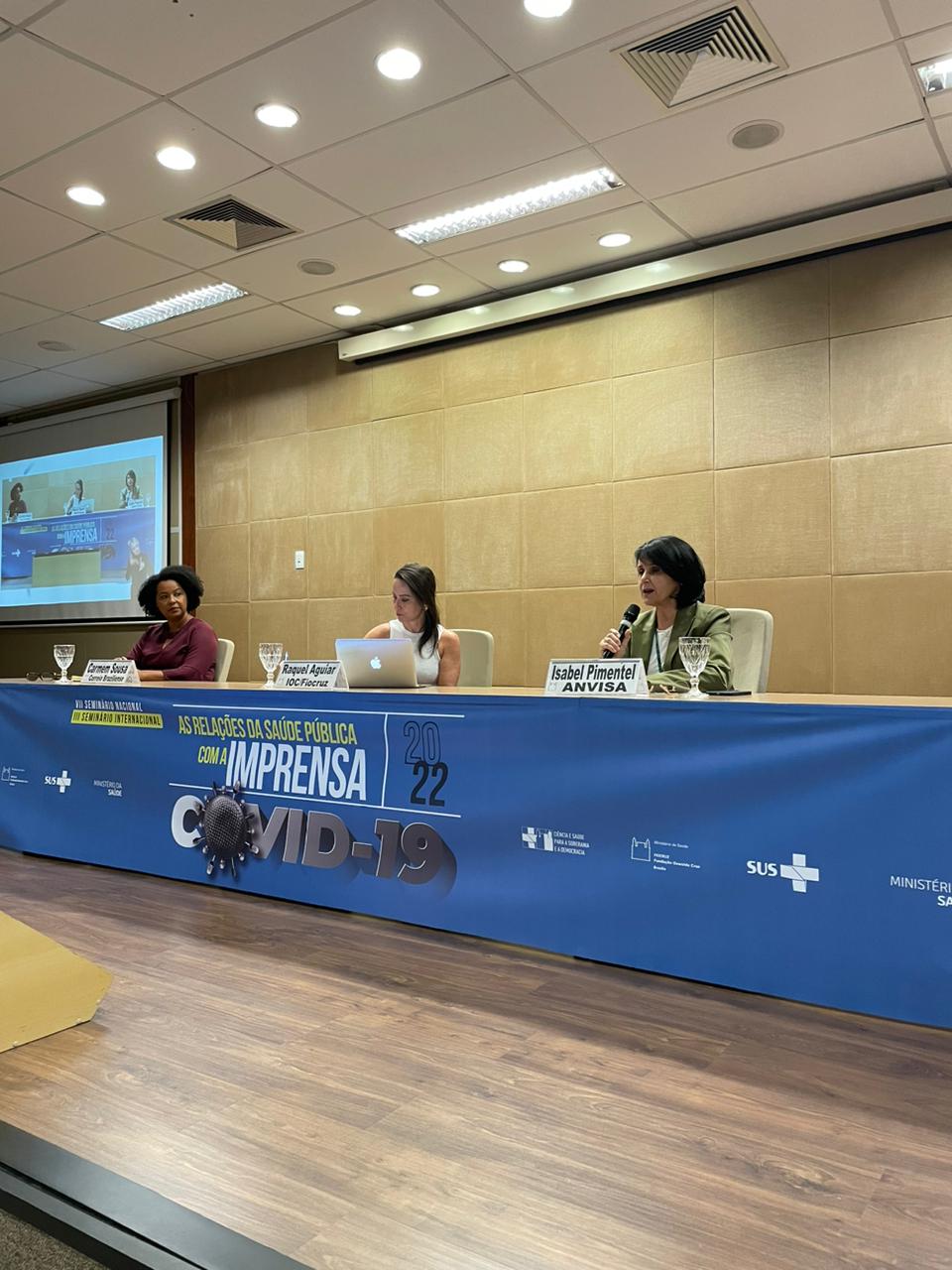 Além da representante da Anvisa, o debate sobre “Saúde do Jornalismo” contou a participação da jornalista Carmem Sousa, do Correio Braziliense . A moderação foi de Raquel Aguiar, coordenadora de jornalismo e comunicação social do Instituto Oswaldo Cruz/Fiocruz .
