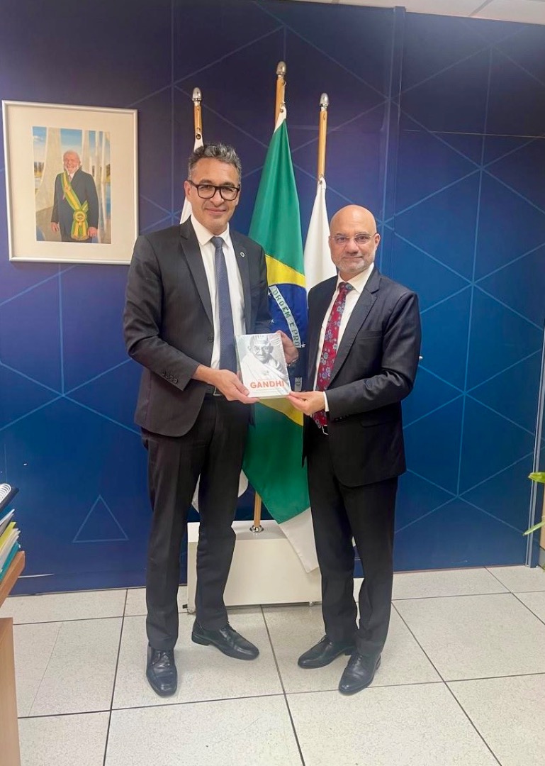 Diretor-presidente substituto da Agência, Rômison Rodrigues Mota, e o embaixador da Índia no Brasil, Dinesh Bhatia.