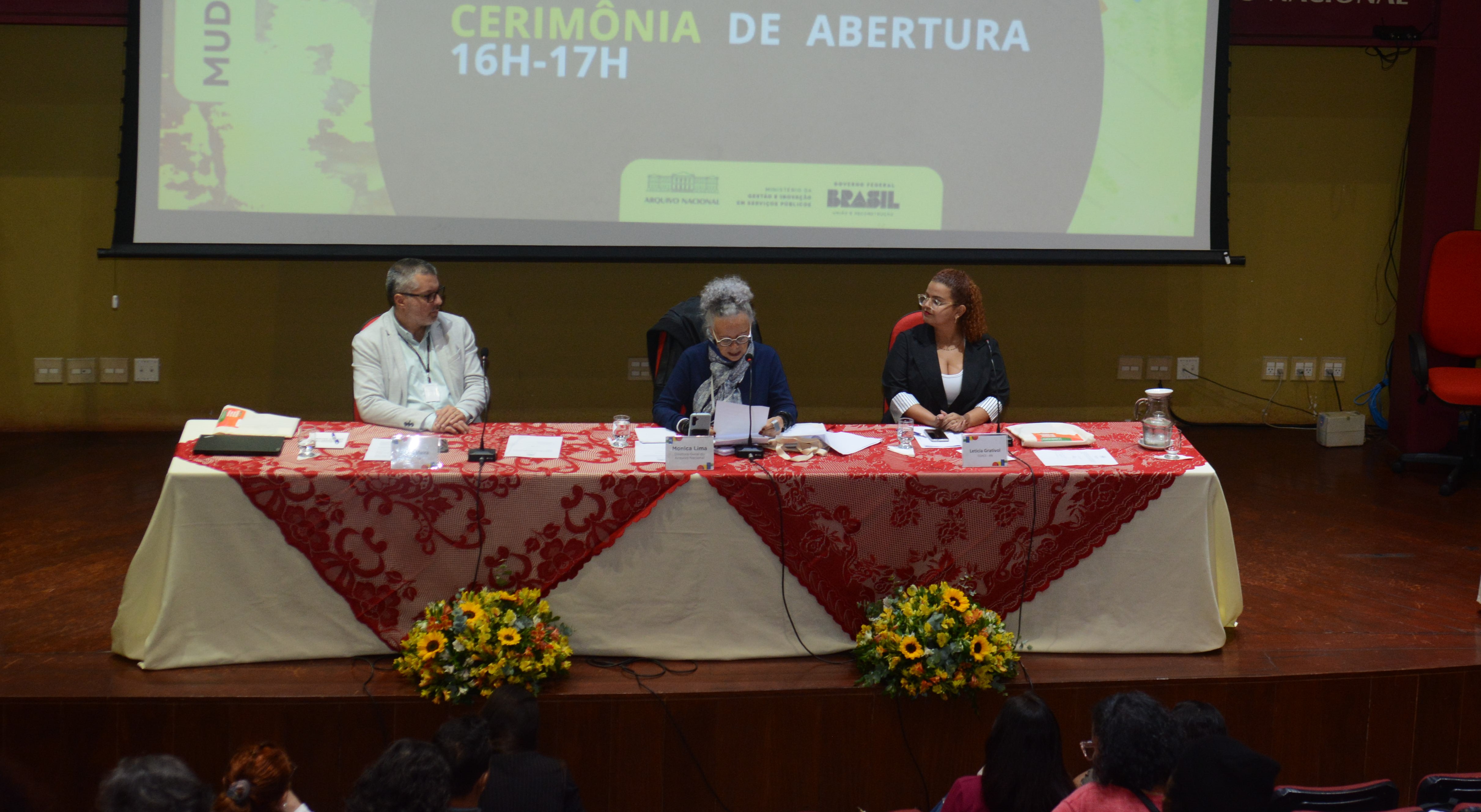 Em seguida, ocorreu a cerimônia oficial de abertura do evento. A diretora-geral do Arquivo Nacional, Monica Lima, destacou a relevância e a urgência da pauta: