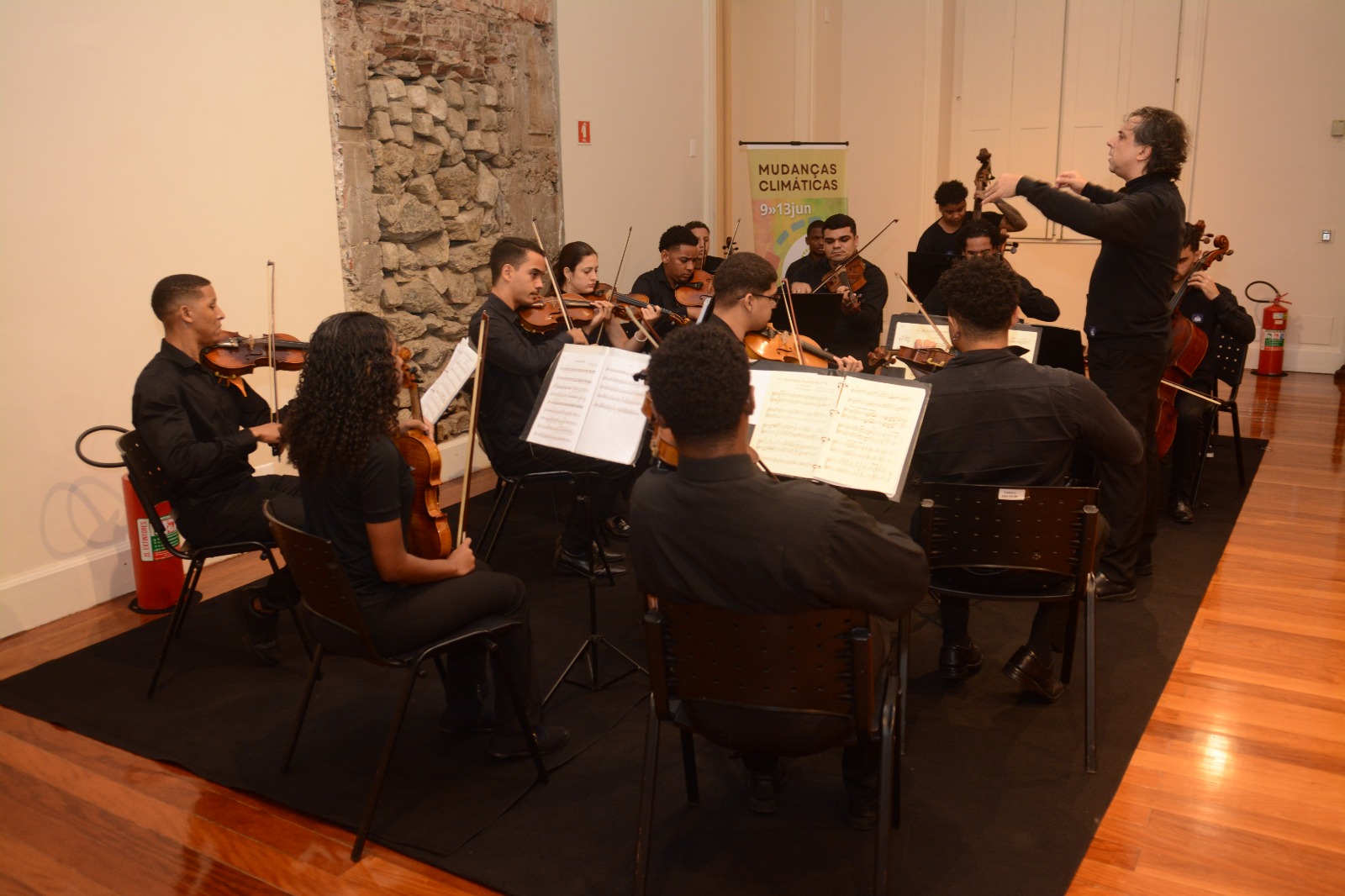 O primeiro dia de programação foi encerrado com uma apresentação musical da Camerata do Uerê, formada por jovens do Complexo da Maré, que interpretaram obras da música clássica e contemporânea no pátio do Arquivo Nacional.