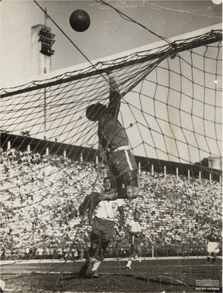 Barbosa pratica defesa na partida Brasil 2 x 2 Suíça, no estádio do Pacaembu (SP), em jogo válido pela Copa do Mundo de 1950. Fundo Correio da Manhã. BR_RJANRIO_PH_0_FOT_01682_048