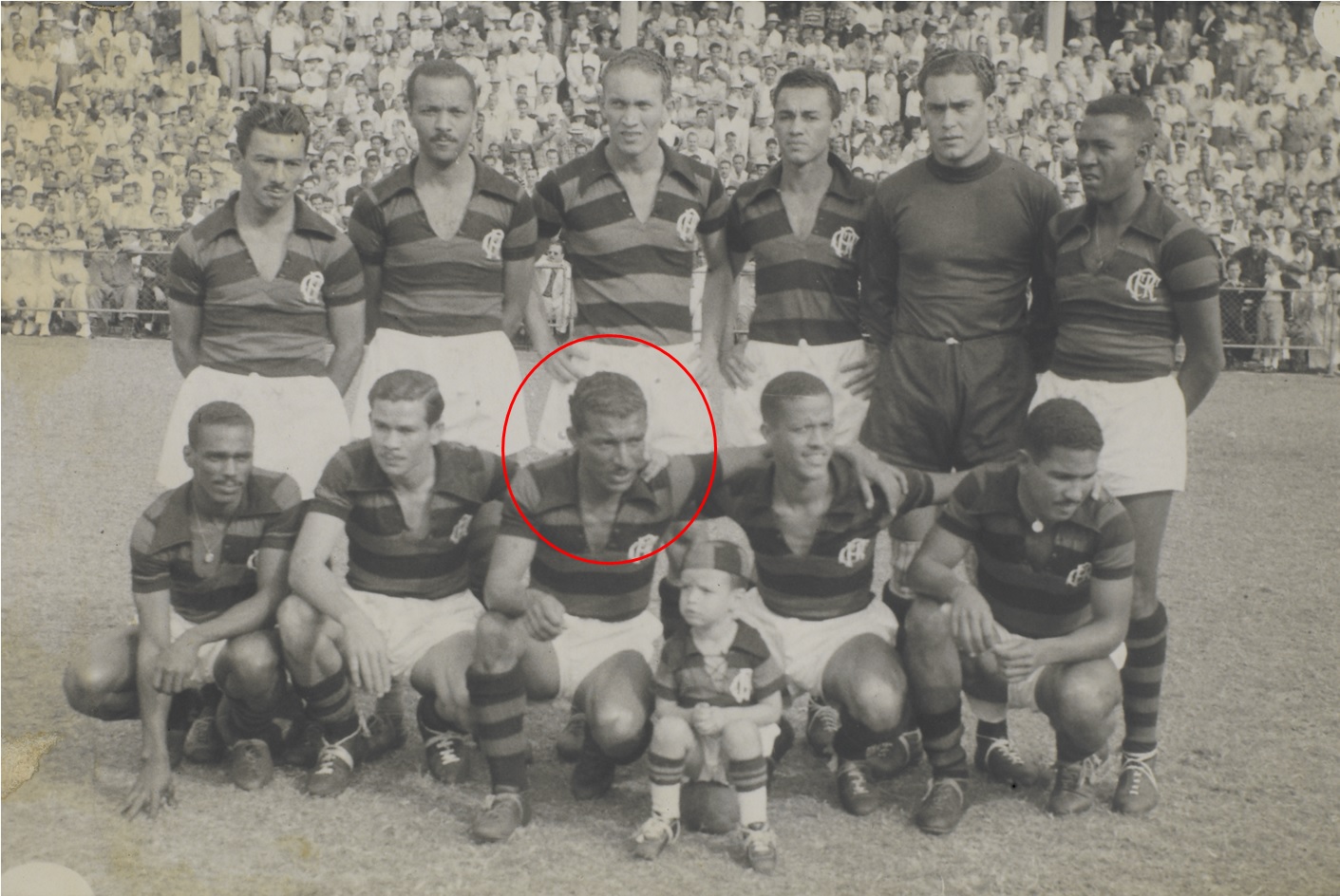 Zizinho (em destaque) antes de uma partida do Clube de Regatas do Flamengo em 1950. BR_RJANRIO_PH_0_FOT_03198_032.