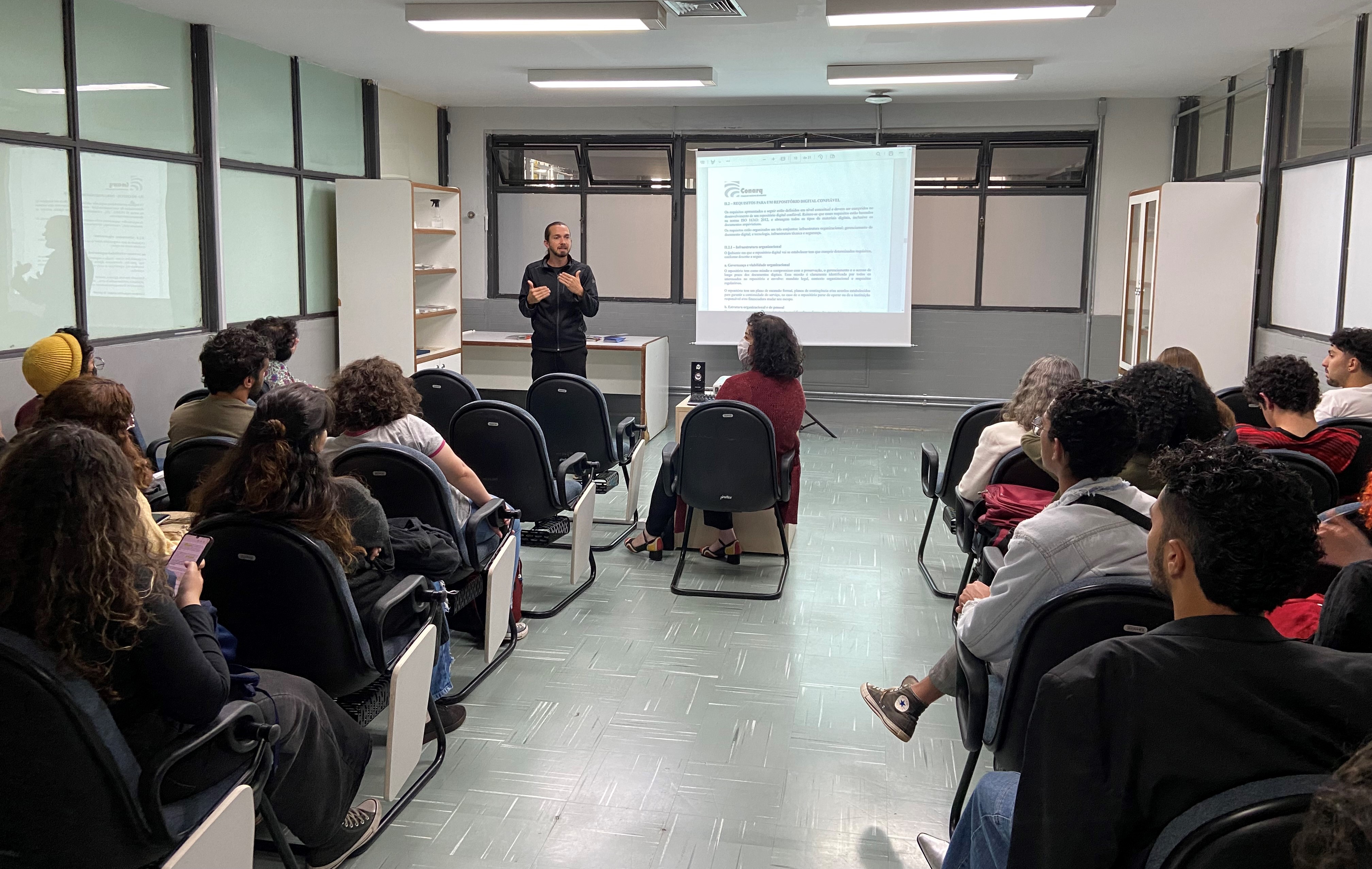 Ainda na sala educativa, a turma assistiu a uma palestra da servidora Marisa Leite que explicou sobre o processo de gestão de documentos, sucedida por uma conversa sobre o processamento e preservação de acervo com o representante da divisão responsável pela tarefa, Isaías Santana.