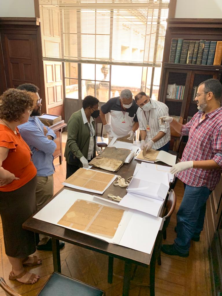 Cesar, e os servidores Alice Nunes e Paulo Vieira, da equipe de conservação e restauração, foram recebidos pela arquiteta Cynthia da Fontoura na nova visita, com o objetivo de avaliar documentos que estejam relacionados, por sua temática, à celebração do Bicentenário da Independância do Brasil, data a ser comemorada em 7 de setembro deste ano. A ideia é que, com o conhecimento e a infraestrutura do AN, essa documentação seja tratada e digitalizada.