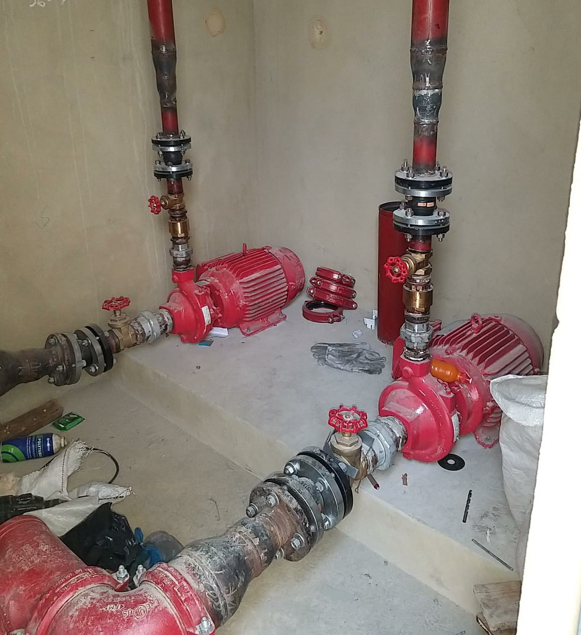 A rede de combate a incêndios será abastecida por uma casa de máquinas exclusiva, com bombas hidráulicas acionadas após a detecção, caso necessário.