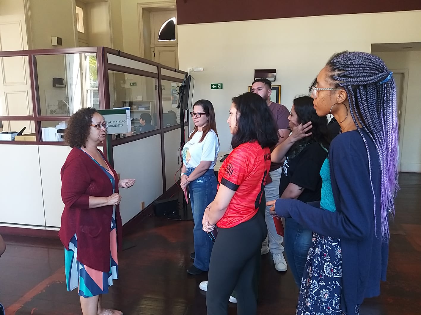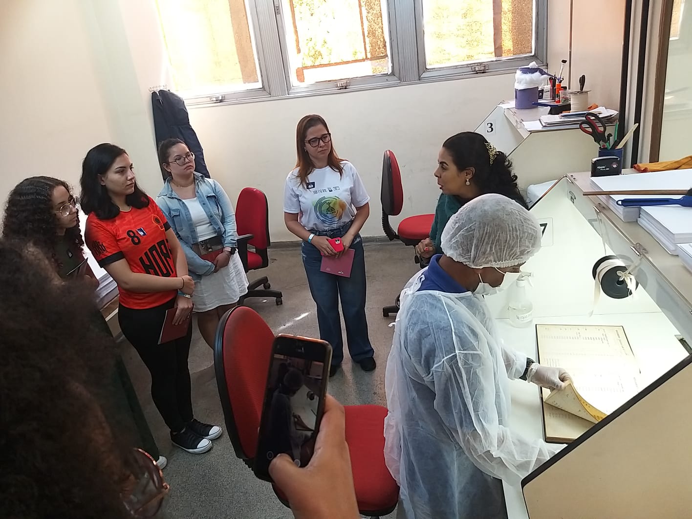 No primeiro dia, os alunos assistiram à palestra “Diretório Brasil de Arquivos – Dibrarq”, ministrada pela servidora Cristina Ruth Santos e, em seguida, o grupo conheceu diversas áreas técnicas da instituição, a área de processamento técnico de documentos privados, iconográficos, cartográficos, audiovisuais e sonoros.