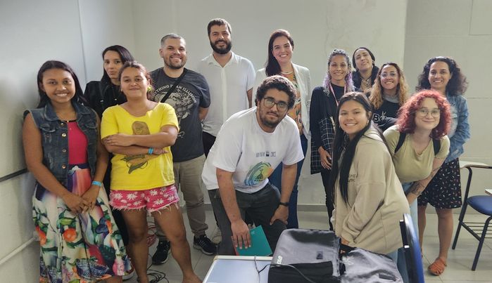 Sheila Mueller, coordenadora de Documentos Audiovisuais e Cartográficos, e Cadu Marconi, lotado na Divisão de Processamento Técnico de Documentos Audiovisuais e Sonoros, ministraram a oficina “Introdução à documentação audiovisual”. A atividade teve como objetivo promover conhecimento introdutório sobre as ações de processamento técnico e as rotinas de gestão dos acervos audiovisuais.