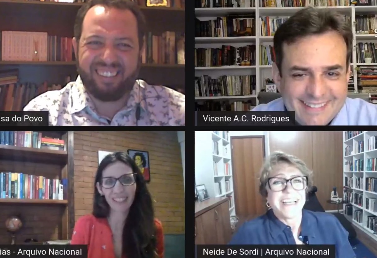 Por sua vez, o AN também recebe arquivos pessoais e de organizações da sociedade civil brasileira de diferentes cronologias e suportes, mediante a declaração de interesse público por parte do Conselho Nacional de Arquivos (Conarq). Dentre eles, a Diretora-Geral Neide De Sordi, uma das convidadas do debate on-line, destacou os conjuntos documentais de ex-presidentes , do jornal Correio da Manhã , do ex-ministro San Tiago Dantas , do militante Apolônio de Carvalho , do multiartista Mário Lago , da emissora de TV Tup i, e da Associação dos Arquivistas Brasileiros . “Esses acervos dialogam com os acervos preservados na Casa do Povo”, afirmou.
