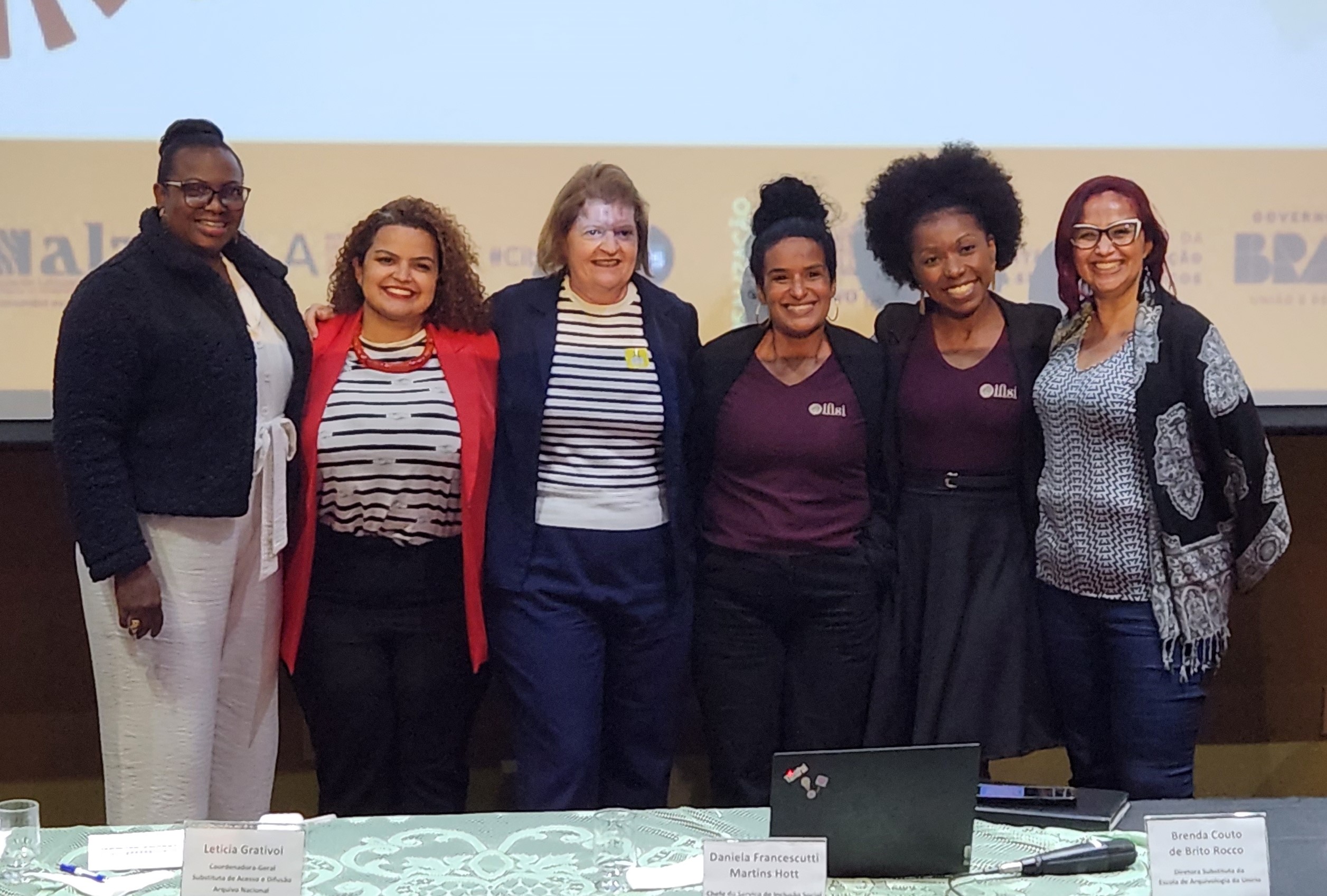 A mesa ainda contou com a moderação de Letícia Grativol, coordenadora-geral de Acesso e Difusão de Acervos do Arquivo Nacional, e com a fala inaugural proferida pela diretora-geral adjunta do AN, Gecilda Esteves.