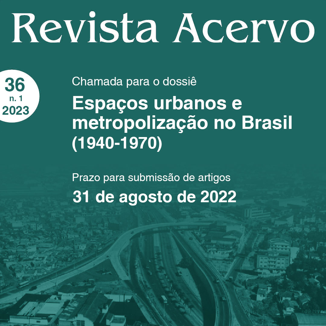 , periódico científico do Arquivo Nacional, torna pública a chamada para o dossiê “Espaços urbanos e metropolização no Brasil (1940-1970)”, que tem como editores Raphael Rajão Ribeiro, doutor em História, Política e Bens Culturais pelo Centro de Pesquisa e Documentação em História Contemporânea do Brasil (Cpdoc/FGV) e pesquisador do Museu Histórico Abílio Barreto/Fundação Municipal de Cultura de Belo Horizonte (MHAB/FMC); e Samuel Silva Rodrigues de Oliveira, doutor em História, Política e Bens Culturais pelo Cpdoc/FGV, professor e pesquisador no Laboratório de Estudos de História dos Mundos do Trabalho da Universidade Federal do Rio de Janeiro (LEHMT/UFRJ) e no Programa de Pós-Graduação em Relações Étnico-raciais do Centro Federal de Educação Tecnológica Celso Suckow da Fonseca (PPRER/Cefet/RJ).