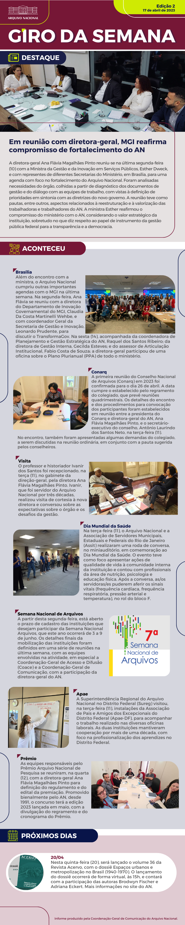 Notícias Giro da Semana - n.º 2 Compartilhe: Compartilhe por Facebook Compartilhe por Twitter Compartilhe por LinkedIn Compartilhe por WhatsApp link para Copiar para área de transferência Publicado em 17/04/2023 17h25
