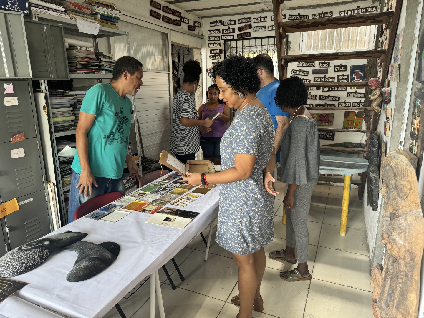 Na sequência, Ana Flávia visitou o Acervo da Laje, arquivo comunitário que tem se destacado como espaço de memória artística, cultural e de pesquisa