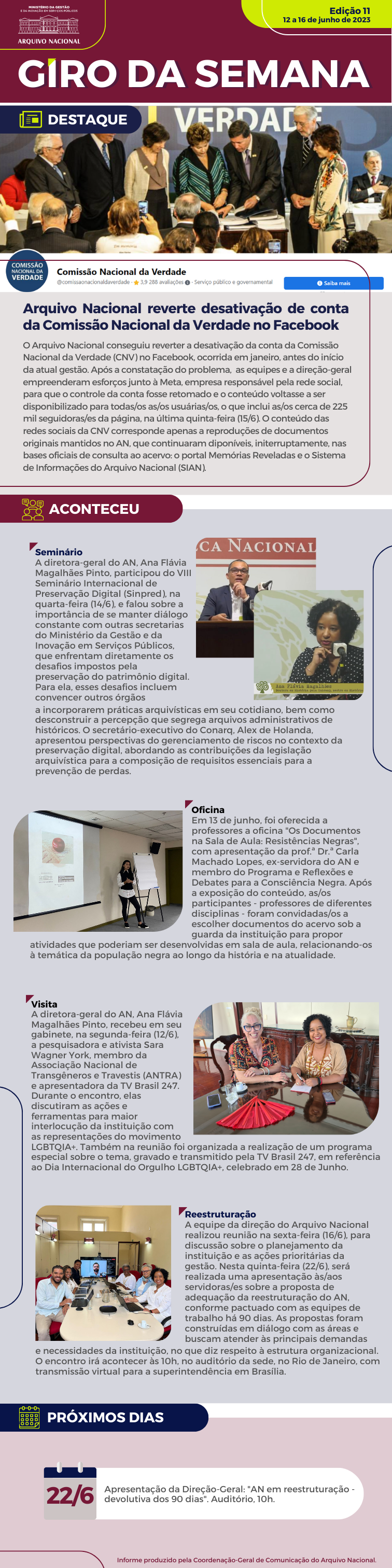 Notícias Notícias de 12 a 16 de junho Compartilhe: Compartilhe por Facebook Compartilhe por Twitter Compartilhe por LinkedIn Compartilhe por WhatsApp link para Copiar para área de transferência Publicado em 19/06/2023 17h53