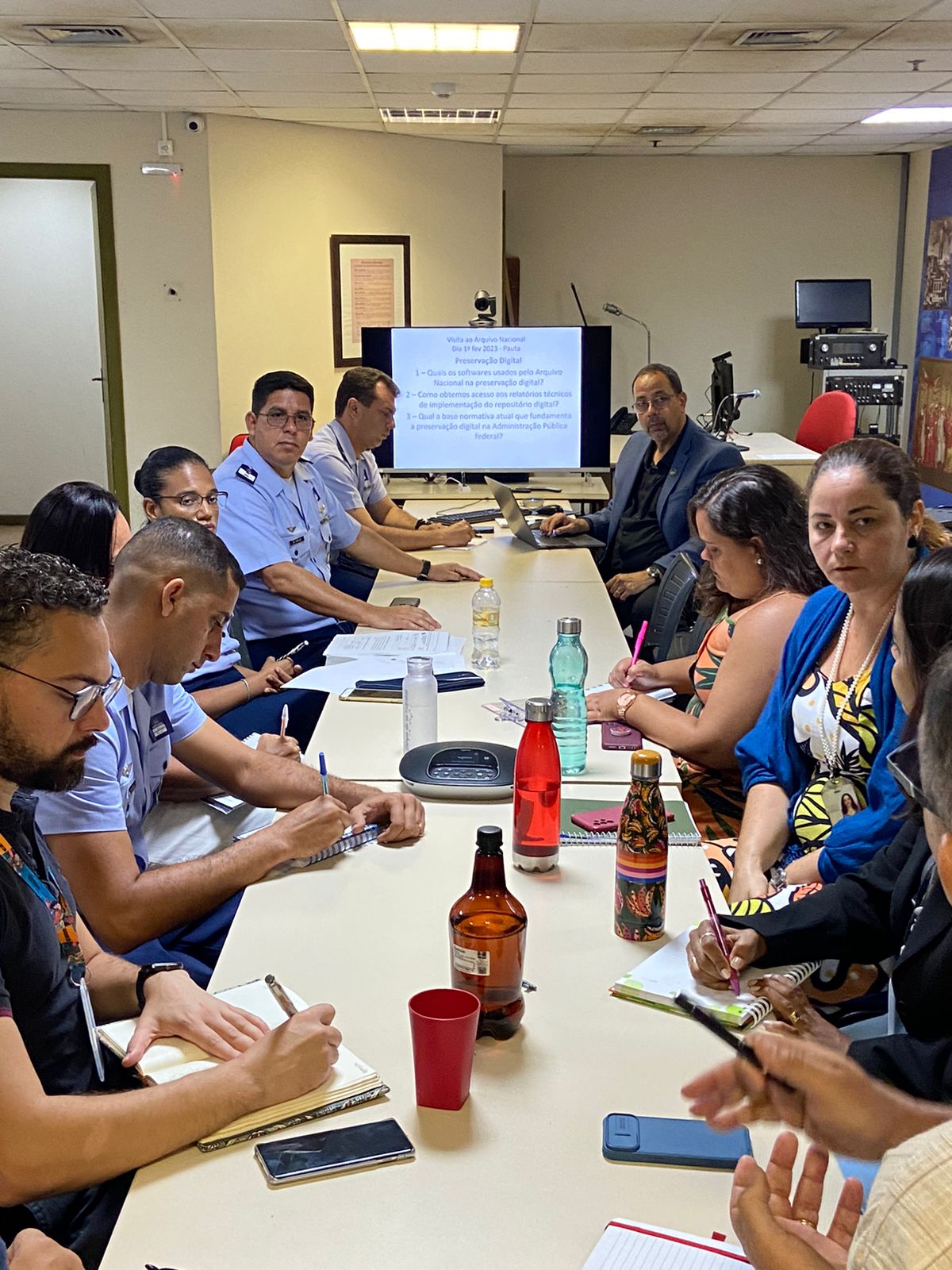 Os oficiais participaram de reuniões de orientação técnica com os servidores da Coordenação-Geral de Gestão de Documentos e da Coordenação-Geral de P rocessamento T écnico e P reservação do A cervo .