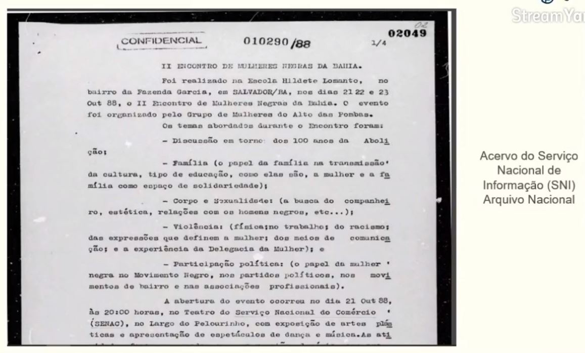 O projeto Arquivo nas Escolas trouxe, na última sexta-feira (7 de maio), a oficina on-line “Movimento Negro, mulheres negras, acervos e escolas”, que abordou a proposta em torno de uma pedagogia voltada para um ensino antirracista, com apoio do acervo sob a guarda do Arquivo Nacional.