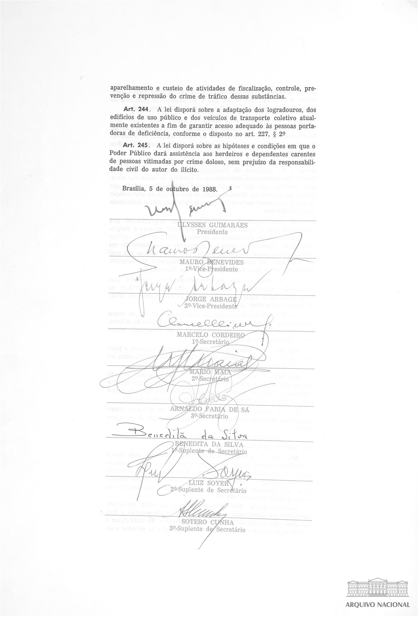 Conhecida por "Constituição Cidadã", a constituição vigente é a sétima adotada no país, e é considerada uma das mais modernas, complexas e extensas do mundo. De forma a preservar o documento original, que se encontra devidamente armazenado em depósito da instituição, a "Constituição Cidadã" foi digitalizada e está disponível no Sistema de Informações do Arquivo Nacional (Sian) – a pesquisa pode ser feita, entre outras formas, pelo seu código de referência, BR RJANRIO DK.C88.CST.1