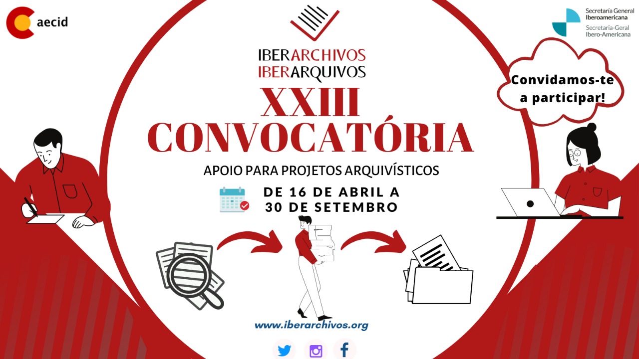 Está aberta a XXIII Convocatória Iberarchivos , da qual poderão participar os arquivos ou outras instituições que custodiem patrimônio documental, legalmente constituídos e que tenham a sua sede social em qualquer dos países aderentes ao Programa Iberarchivos, ou instituições que promovam o desenvolvimento arquivístico da região e formulem projetos através dos quais arquivos/arquivistas da comunidade ibero-americana e Filipinas beneficiem no seu conjunto.