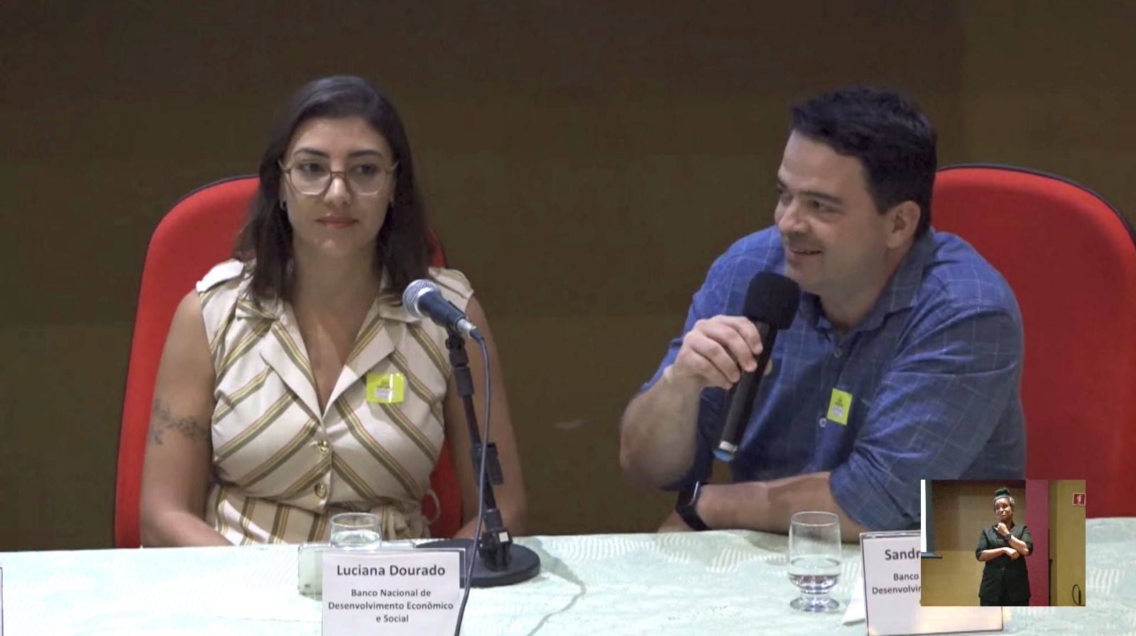 Luciana Dourado e Sandro Gomes, da Gerência de Administração de Arquivos do Banco Nacional de Desenvolvimento Econômico e Social (BNDES), apresentaram a estrutura, inciativas e desafios de uma empresa pública que produz, gerencia e mantém os registros de suas atividades. O advento de uma política corporativa de arquivos no BNDES, explicaram os técnicos, contribuiu para uma série de ações que fizeram a gestão dos documentos da instituição financeira avançar. Como exemplos, citaram a elaboração e aprovação de instrumentos de gestão (código de classificação e tabela de temporalidade e destinação dos documentos das atividades-fim), e o estudo de conceito para a aquisição de um Sigad (Sistema Informatizado de Gestão Arquivística de Documentos, de acordo com os requisitos do e-ARQ Brasil).