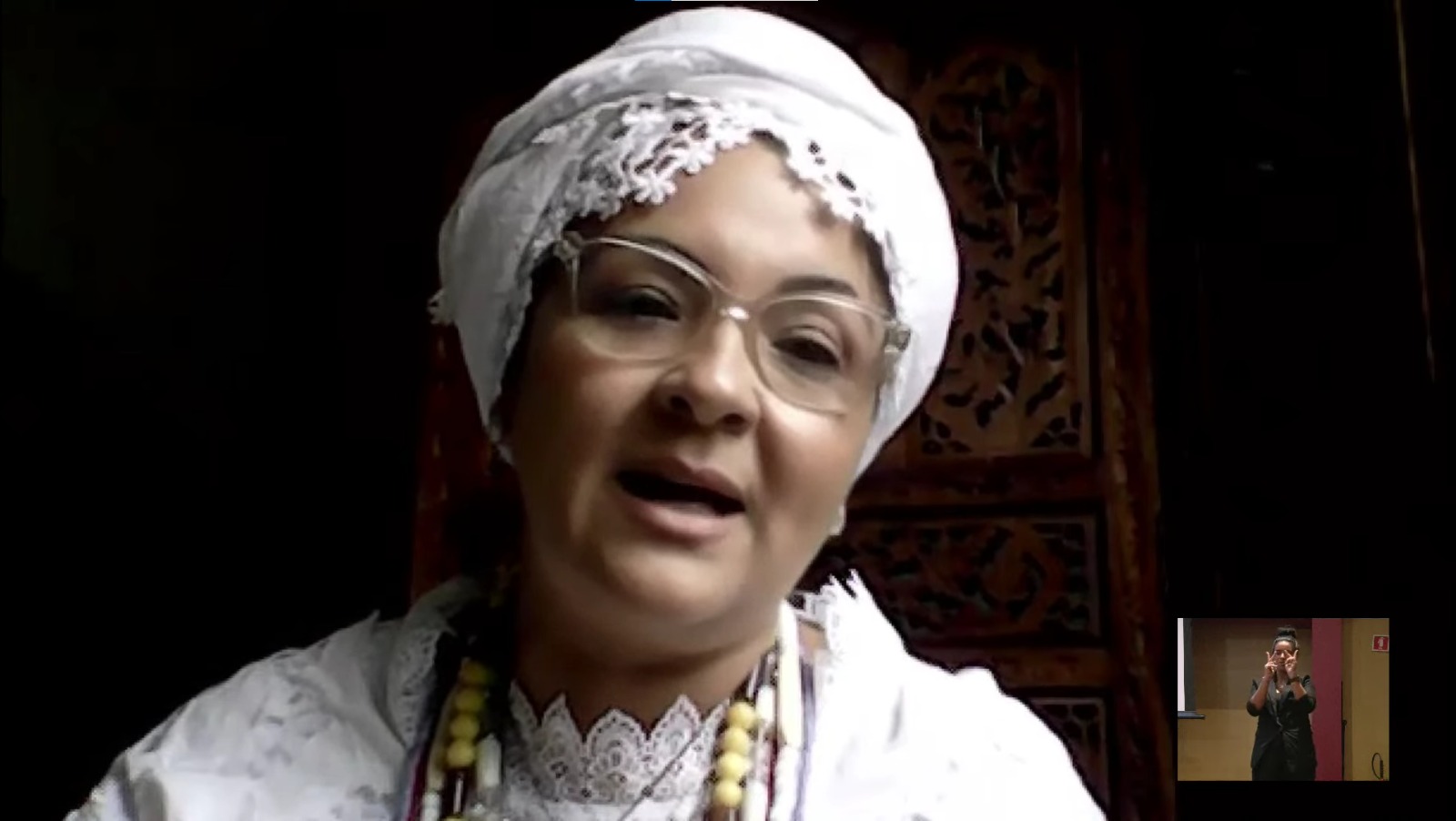 A arquivista Adriana Mattos Rodrigues, que também é ialorixá do ilê Omi Olodo Tolá, trouxe a perspectiva dos registros das religiões e da cultura de matriz africana no Brasil, que não atendem aos requisitos tradicionais dos documentos de arquivo. Ela ressaltou, por exemplo, a importância de se preservar a oralidade, uma vez que parte significativa da população de origem africana foi privada, em diversos momentos, do acesso pleno à educação formal e à escrita. “Guardar falares dos nossos velhos é basilar para que não nos percamos nos moldes ocidentais”, destacou.