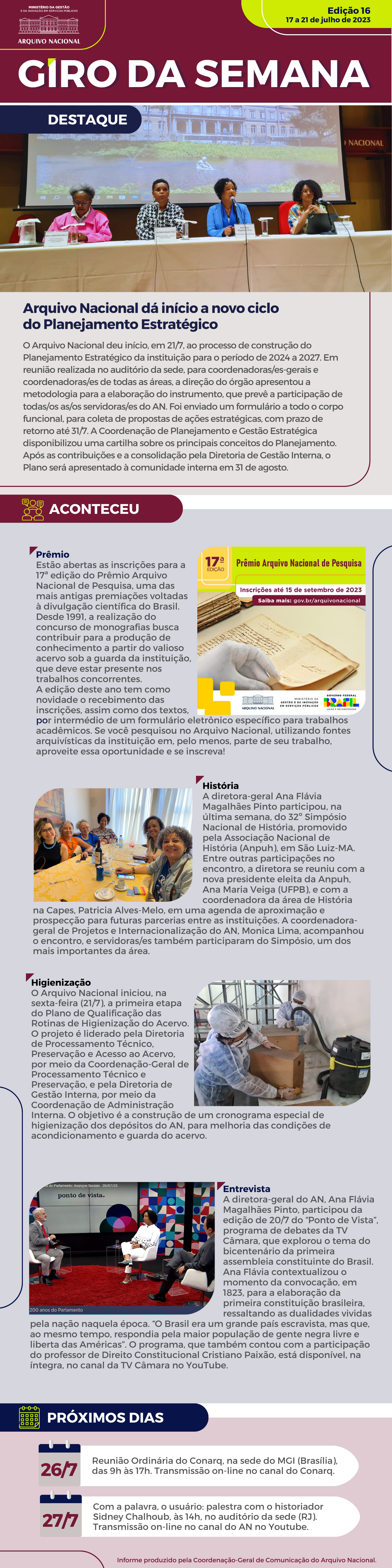 Notícias Boletim Veja as notícias de 17 a 21 de julho Compartilhe: Compartilhe por Facebook Compartilhe por Twitter Compartilhe por LinkedIn Compartilhe por WhatsApp link para Copiar para área de transferência Publicado em 24/07/2023 18h40 Atualizado em 25/07/2023 11h32