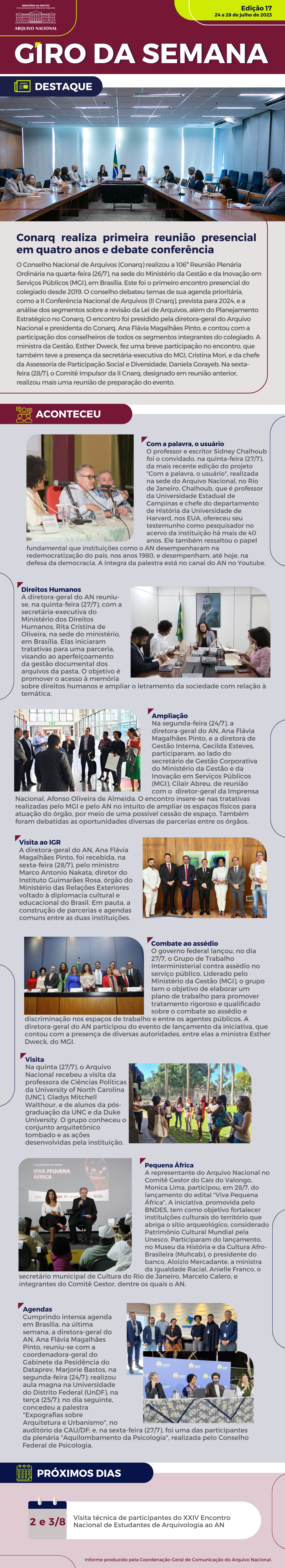 Notícias Veja as notícias de 24 a 28 de julho Compartilhe: Compartilhe por Facebook Compartilhe por Twitter Compartilhe por LinkedIn Compartilhe por WhatsApp link para Copiar para área de transferência Publicado em 31/07/2023 18h48