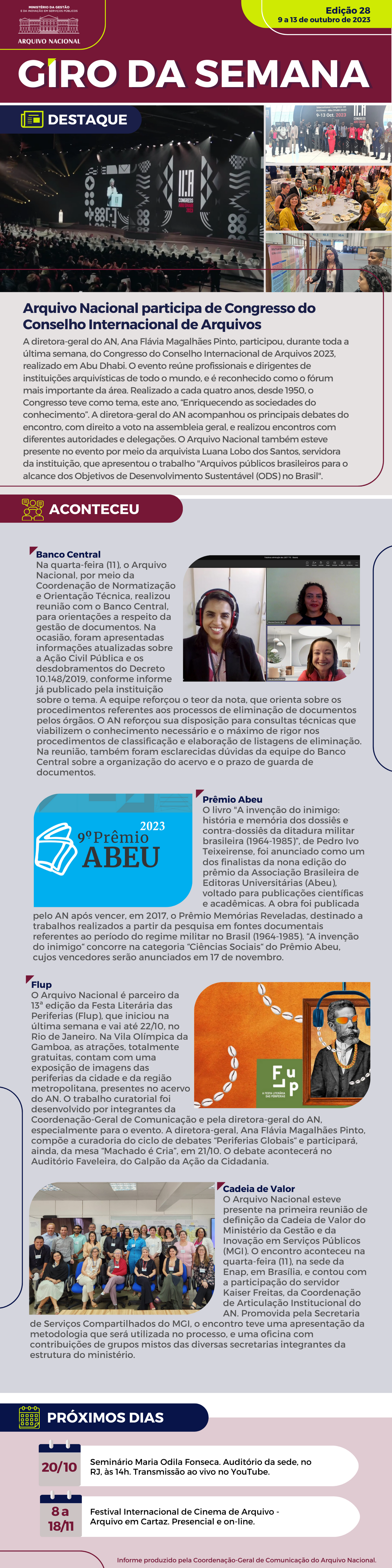 Notícias boletim Veja as notícias de 9 a 13 de outubro Compartilhe: Compartilhe por Facebook Compartilhe por Twitter Compartilhe por LinkedIn Compartilhe por WhatsApp link para Copiar para área de transferência Publicado em 16/10/2023 18h37 Atualizado em 16/10/2023 18h55