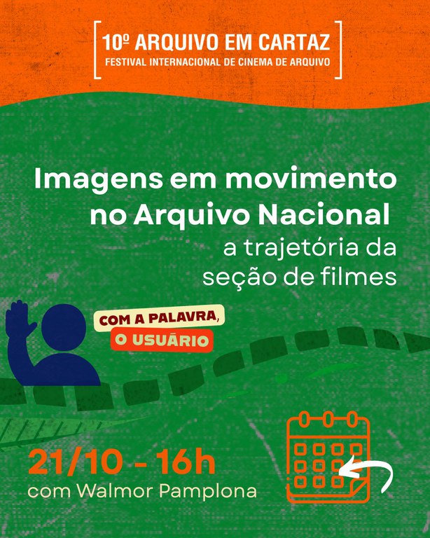 A palestra Imagens em movimento no Arquivo Nacional: a trajetória da seção de filmes, mediada por Marcelo Nogueira de Siqueira, acontecerá no auditório do AN, no dia 21/10 às 16h.
