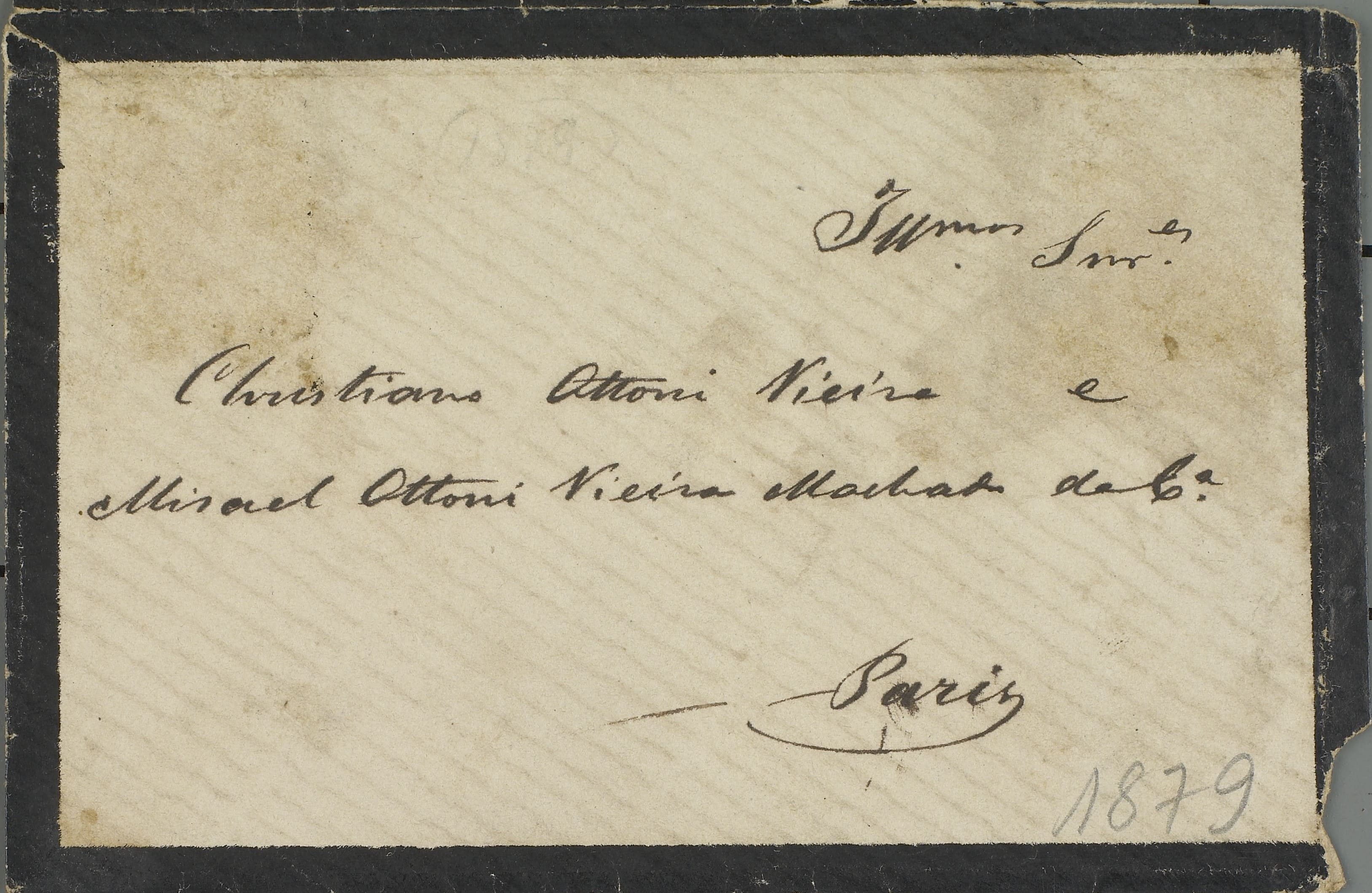 O pequeno envelope com o nome dos destinatários, Mizael Ottoni Vieira e Christiano Ottoni Vieira Machado da Cunha, o único preservado no fundo, comprova que o avô Ottoni enviara uma carta para cada filho de sua primogênita, Virgínia Ottoni Vieira, com o Barão de Madalena, Mizael Vieira Machado da Cunha.[3] O que não tinha como saber o senador era que a correspondência encontraria os meninos em luto pelo falecimento do pai, ocorrido entre os dias 26 e 27 de dezembro de 1879. Acontecimento que certamente fez da presença dos avós ainda mais necessária, como demonstra a segunda carta, de fevereiro de 1880, na qual Ottoni menciona a saudade que o menino sentia do pai: “dizes que tens muita saudade de teu papai que morreu e de nós todos de cá; nós também temos muita saudade dele, de ti, de teu irmão, de tua mamãe, de Tia Paulinha e Tio Júlio”.