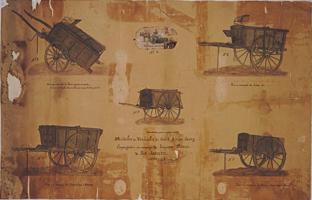 A Aleixo Gary & Company teve contratos para recolhimento do lixo na cidade entre 1876 e 1891. Foi inicialmente contratado para limpeza e irrigação do Rio de Janeiro por 10 anos; em 1885 tornou-se também responsável pela limpeza das praias. Em 1876, o serviço cobria as freguesias de São José, da Candelária, do Sacramento, de Santana, de Santo Antônio, de São Cristóvão, do Espírito Santo, do Engenho Velho e Andaraí, da Glória e da Lagoa. A limpeza pública compreendia, de acordo com o contrato firmado entre Gary e o governo imperial: “A remoção do lixo, lama, imundícies, matérias líquidas, animais mortos, terra, areia, etc., depositados ou acumulados nas ruas e praças públicas; a varredura das ruas e praças públicas; a extração de toda a vegetação; a lavagem e desinfecção das latrinas e urinários públicos; esgotamento das águas estagnadas e das que se acumularem por ocasião de chuvas torrenciais nas ruas, praças, etc.” A empresa de Aleixo Gary também foi responsável por modernizar os carros e carroças que faziam os recolhimentos pela cidade, como se vê no documento em tela, e também por instalar as primeiras lixeiras nas ruas da cidade, inspiradas nas poubelles francesas. Em 1881, no segundo contrato, a zona sul já aparece na lista de freguesias da cidade e em 1885 são acrescidos os bairros da zona norte.