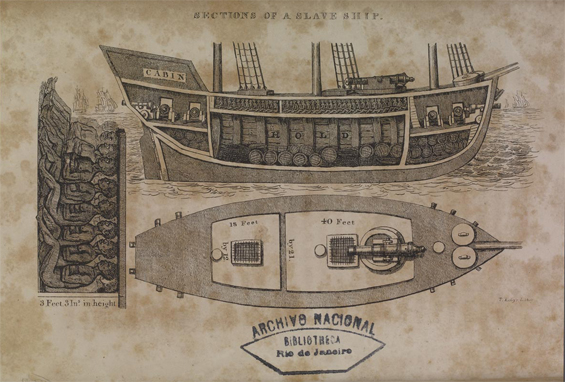 Compartimentos de um navio negreiro. In: WALSH, R. Notices of Brazil in 1828 and 1829 . London: Frederick Westley; A. H. Davis, 1830. OR0524 V2 f478