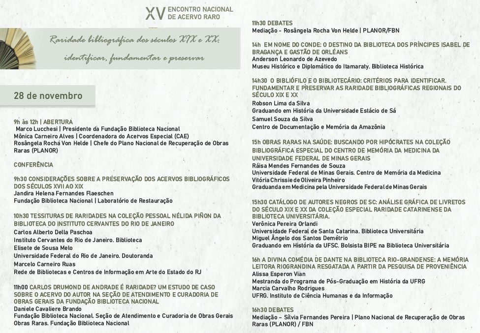 26 de novembro de 2021 – 14h às 17h | Conferências - XV ENAR – Encontro Nacional de Acervo Raro - Raridade bibliográfica dos séculos XIX e XX: identificar, fundamentar e preservar