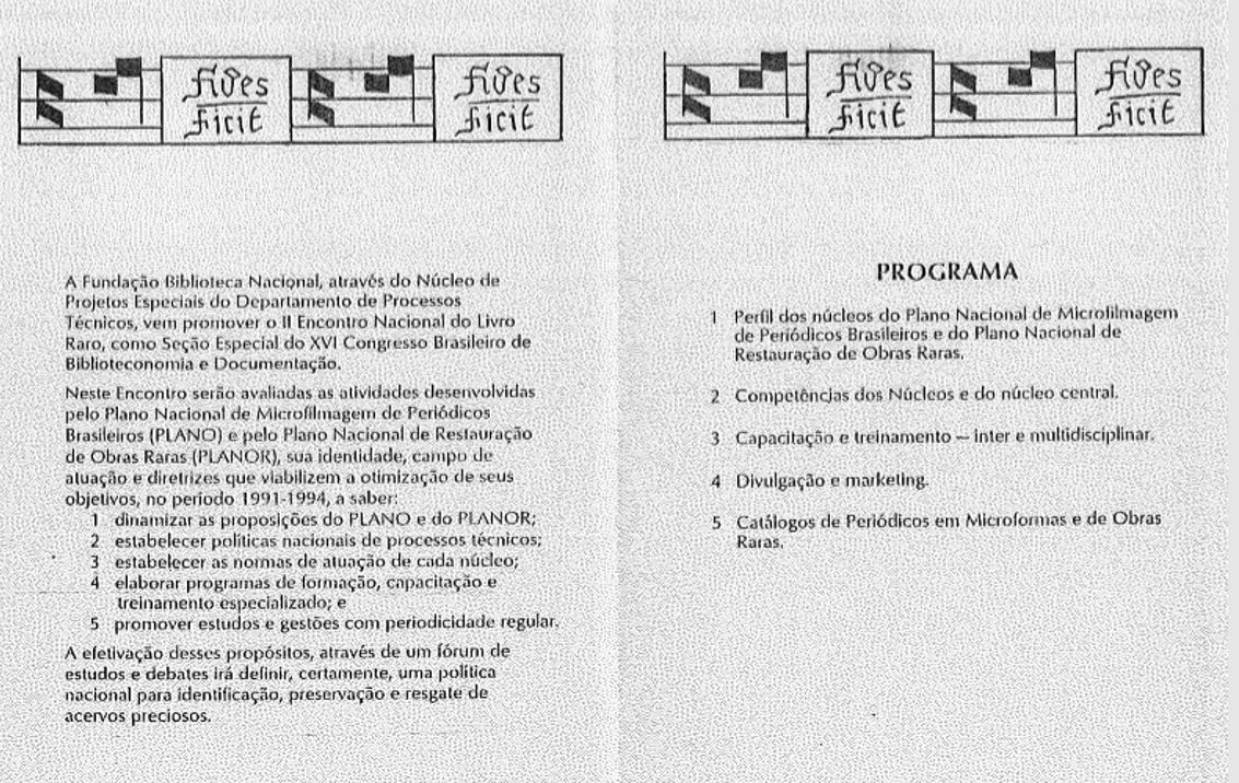 Documentação: Boletim Planor Ano 1, n. 1 - IV ENAR – Encontro Nacional de Acervo Raro
