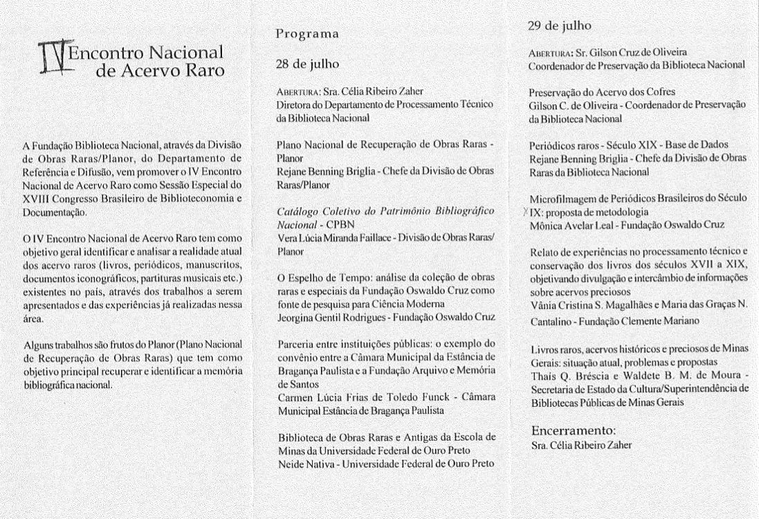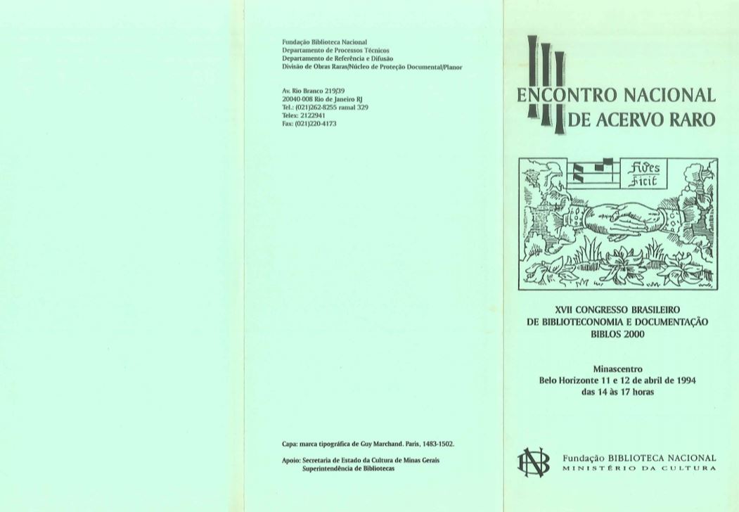 Folder: frente | verso - VI ENAR – Encontro Nacional de Acervo Raro