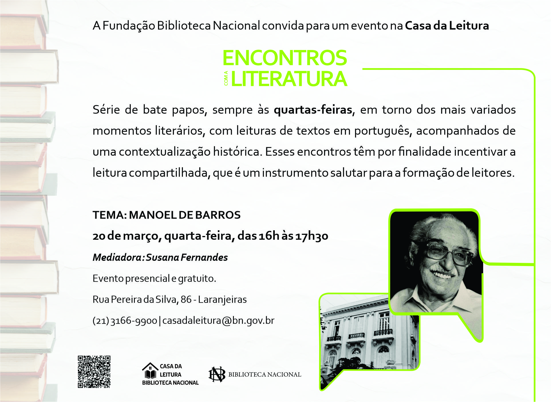 A FBN convida para um evento na Casa da Leitura Encontros com a Literatura - Manoel de Barros