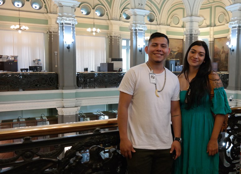 Neste Dia Internacional dos Povos Indígenas (09/08), a Biblioteca Nacional teve a honra de receber a visita de duas lideranças indígenas: Lucas Marubo, do povo Marubo, originário do Amazonas; e Isabela Kariri, do povo Kariri, originário da região Nordeste.