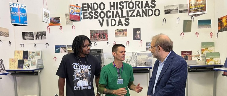 (25/06) FBN doa 1,5 mil livros para unidade prisional em Resende Em junho, o presidente Marco Lucchesi esteve na Cadeia Pública Inspetor Luís Fernandes Bandeira Duarte, em Bulhões, distrito de Resende (RJ), para doar 1,5 mil livros editados pela FBN para a biblioteca da unidade. Este ano, Lucchesi também esteve na Unidade Escolar Feminina Hailton dos Santos, do Instituto Penal Djanira Dolores de Oliveira, localizada em Bangu, no Rio de Janeiro, onde fez a doação de 107 livros. |