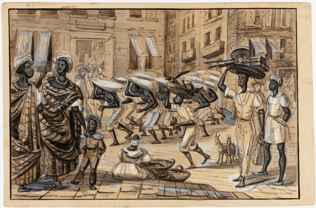- Scène de la Rua Direita. Nègres porteurs de caffé - Negresses affranchies Nègre affranchi - Voyageur affricain, de Paul Harro-Harring, c.1840. Acervo de Iconografia/Instituto Moreira Salles. Fonte: Brasiliana Iconográfica