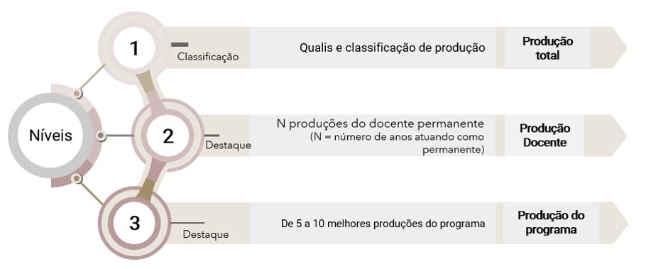 Enquanto o Qualis e demais processos de classificação de produtos acadêmicos serão as ferramentas para análise da produção do nível 1, uma avaliação mais qualitativa pode ser feita nos outros níveis, em especial no nível 3.