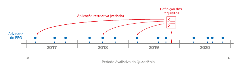- Ao se reconhecer que a Lei veda a incidência retroativa de eventuais inovações dos parâmetros de avaliação, e tendo em vista que foram estabelecidos marcos temporais para sua publicação, sempre anteriores ao início do quadriênio, os milhares de Programas de Pós-graduação (PPG) avaliados passam a deter melhores condições para conhecer, com antecedência, os elementos que lhes serão exigidos ao final do quadriênio, conferindo-se previsibilidade e isonomia à Avaliação Quadrienal.