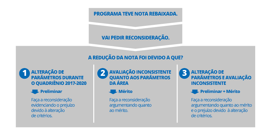 Por outro lado, o MPF comprometeu-se a reconhecer a necessidade de aplicação dos atuais parâmetros na quadrienal 2017-2020, ainda que tenham sido publicados somente no final do quadriênio, desde que os PPGs prejudicados por eventuais inovações retroativas possam solicitar, como preliminar de recurso ou pedido de reconsideração, que esse aspecto seja avaliado, permitindo-se, nesses casos, repetição da nota anterior.