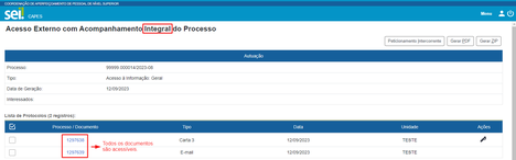 O acesso externo ao processo pode acontecer de forma integral ou parcial: