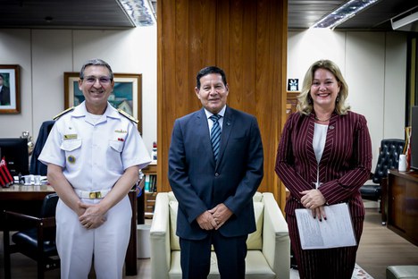Cláudia de Toledo reuniu-se com Hamilton Mourão, vice-presidente da República, e o contra-almirante Antonio Cesar da Rocha Martins, secretário da Comissão Interministerial para os Recursos do Mar (CIRM)