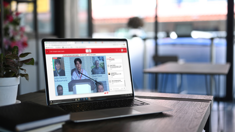 Banner e Imagem dentro da matéria: Mercedes Bustamante Durante participa da cerimônia de abertura da conferência internacional da Scielo. Montagem do print da tela do computador. (Foto: Divulgação )