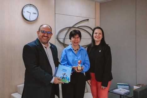 Marcelo Turine, reitor da UFMS, Mercedes Bustamante, presidente da CAPES e Camila Ítavo, vice-reitora da UFMS