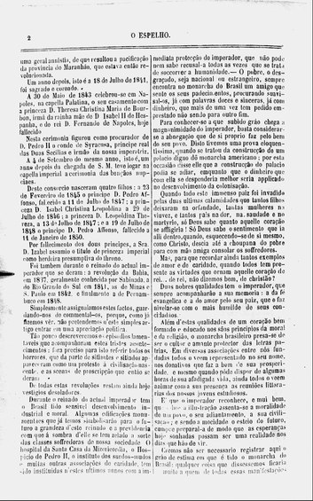 Já nos primeiros parágrafos foi possível encontrar a ironia e a sutileza tão utilizadas nos textos escritos por Machado de Assis quando mais maduro, mas que já apareciam, mesmo que de maneira menos rebuscada, n’O Espelho . Na biografia, Machado de Assis advertiu que não falaria de Pedro II sob a perspectiva da política, pois as conveniências e o cálculo o silenciavam. Seria o chamado ‘bolsinho do Imperador’, que emprestava incentivo financeiro a alguns empreendimentos da impressa da época, com o objetivo de construir uma imagem de ‘imperador amigo das artes e da literatura’.