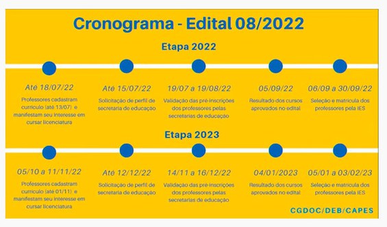 Cronograma do Edital nº 8/2022 do Parfor, também demonstrado na transmissão