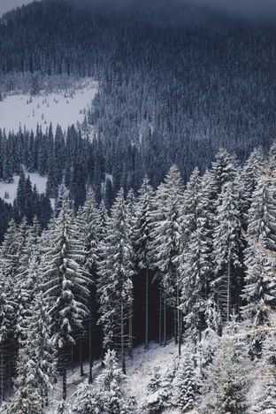 Imagem 3: Já uma floresta de pinheiros coberta com neve é mais fria, tem menor biodiversidade, mas se conecta de forma mais coesa a climas semelhantes ao redor do mundo (Crédito: Ciprian Boiciuc/Reprodução)