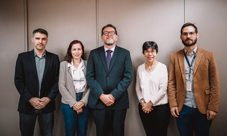 Ao centro, Edson da Costa Bortoni, reitor da Unifei, na reunião com Mercedes Bustamante, presidente da CAPES