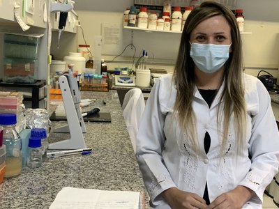 Cabe à bolsista de pós-doutorado Mariela Thiem o trabalho com a proteína N (nucleocapsídeo), a que mais tem produzido antígenos na pandemia (Foto: Guilherme Pera - CCS/CAPES)