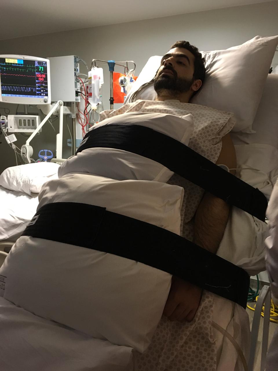 Imagem: Bruno Drummond de Freitas internado após sofrer acidente que poderia deixá-lo tetraplégico (Arquivo pessoal)